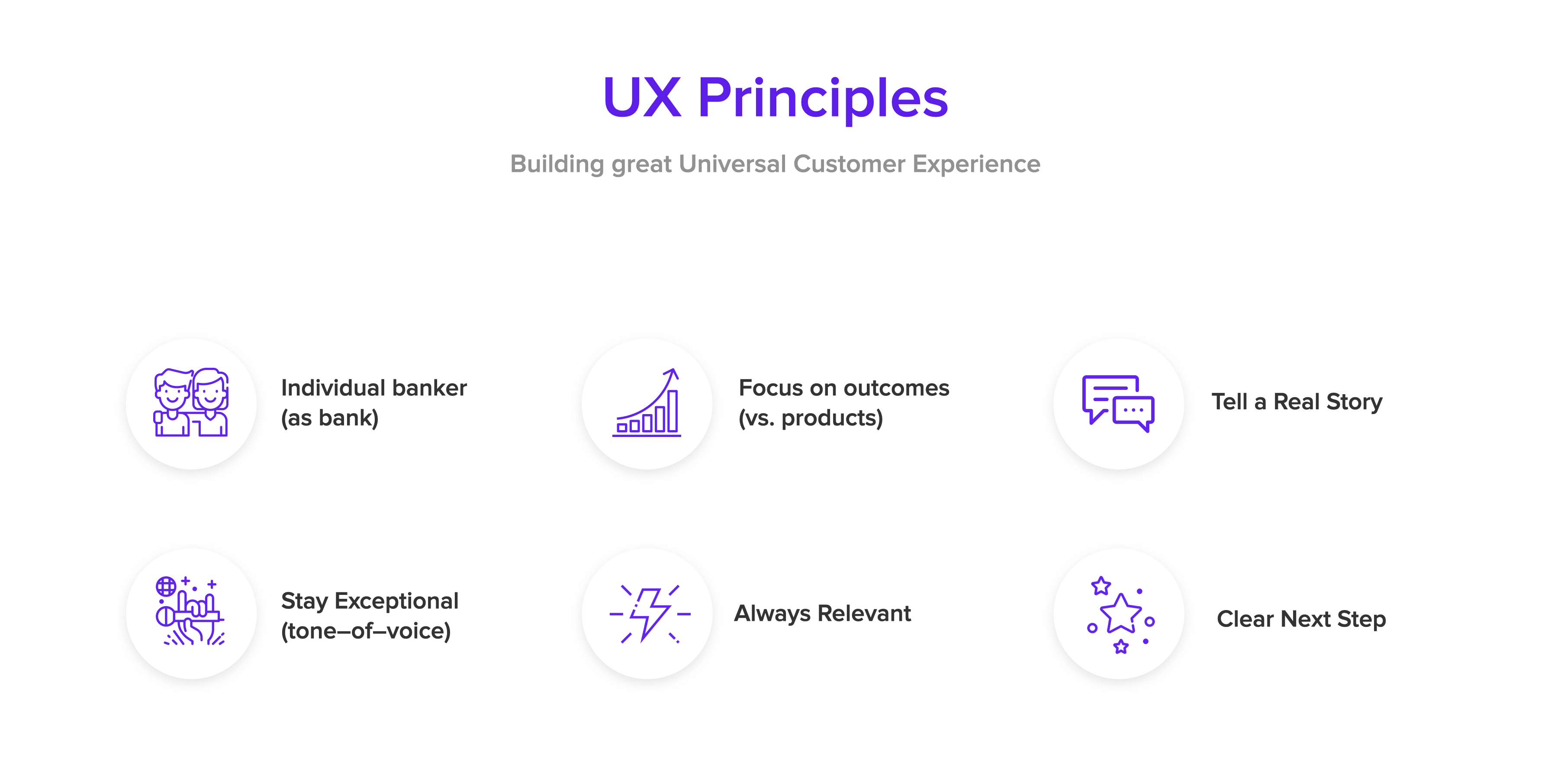 After these sessions we sat with the UX team and wrote down the UX principles for Van Lanschot. These principles where our compass during the entire project and gave us a clear direction on which way should go. We wrote down the and where applied to every channel we use. Such as the website, mobile apps, marketing, internal & external tools etc.